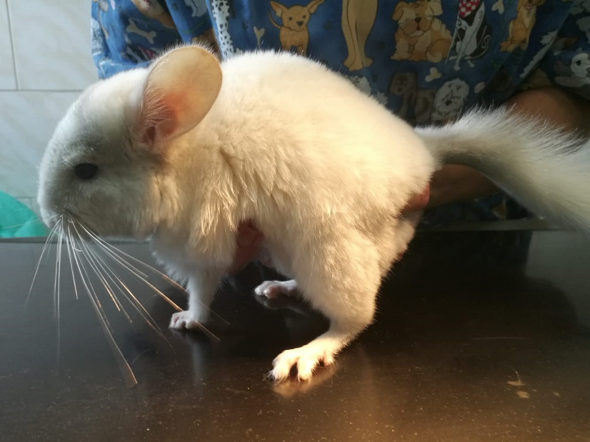 Velmi komplikovaná fraktura obou předloketních kostí u drobné činčily, jelikož se tak drobné implatáty běžně nevyrábějí, řešili jsme ji implantací nitrodřeňových hřebů vyrobených z injekčních jehel. Pacient se kompletně a bez následků uzdravil, po vyjmutí hřebů nožičku naplno používá.