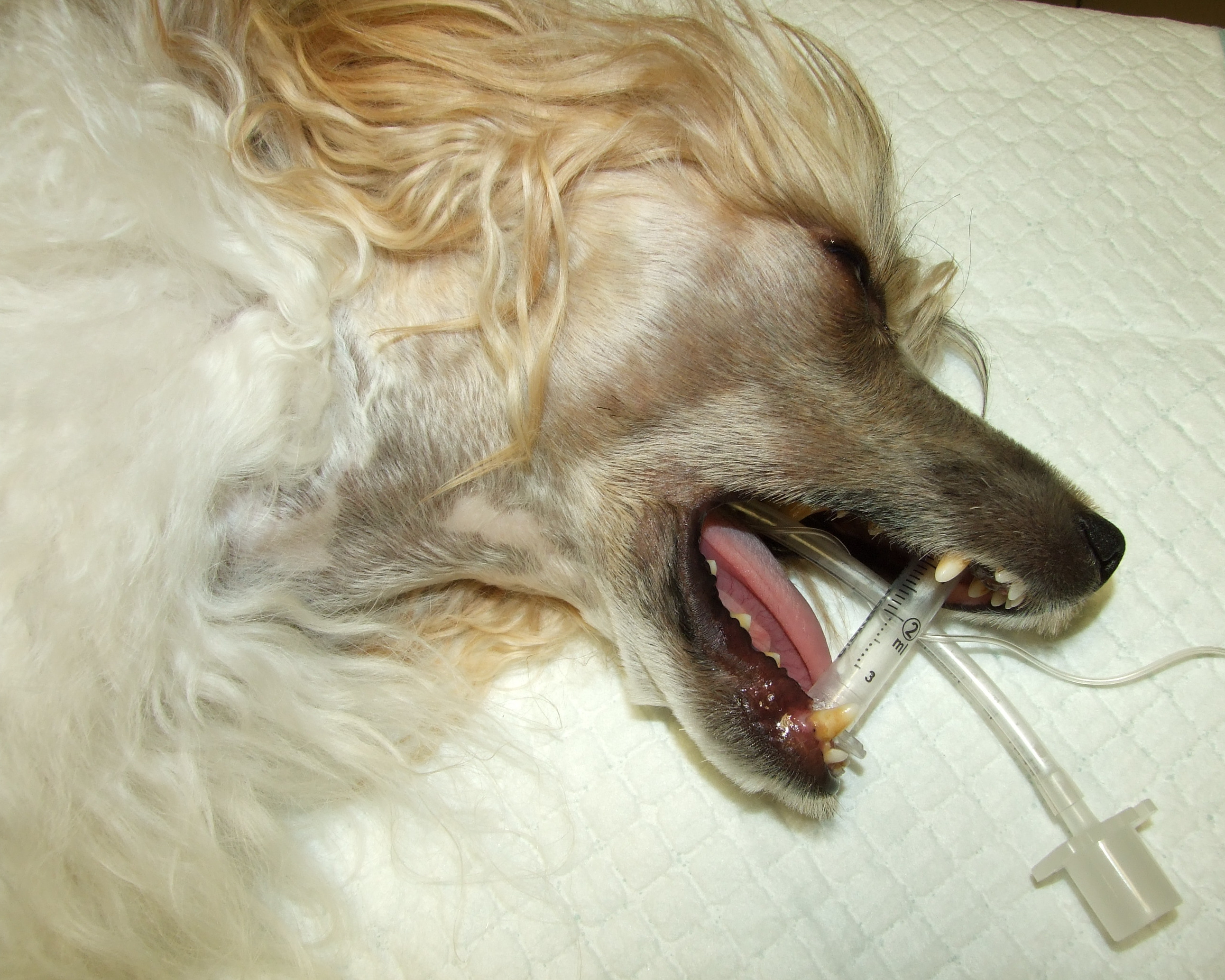 Sanaci chrupu provádíme v celkové anestezii. Po předoperačním vyšetření, které zahrnuje klinické vyšetření a volitelně také rozbor krve přímo v naší ordinaci, uvedeme pacienta do sedace nitrosvalovou aplikací. Dokud neusne, je žádoucí přítomnost jeho majitele. Následně je zajištěn žilní vstup katetrem, odebrány vzorky pro případné krevní analýzy, aplikována první dávka nitrožilní anestezie a zajištěny dýchací cesty tracheálním tubusem s nafukovací manžetou. Ta jednak zajišťuje bezpečné dýchání pacienta, mimo jiné ho také chrání před vdechnutím výplachových roztoků nebo kousků zubního kamene uvolněného ultrazvukovou sondou a rotačními nástroji. Pacient je obvykle připojen na infuzi zajišťující optimální hydrataci a krevní tlak, v chladnějším období je zajištěn teplotní komfort přikrývkou.